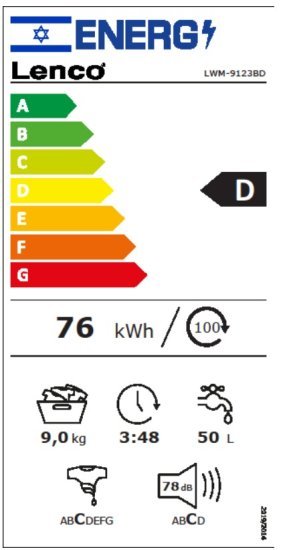 מכונת כביסה פתח חזית 9 ק"ג 1000 סל"ד לנקו LWM-9123BD – צבע לבן דלת שחורה