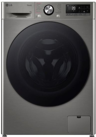 מכונת כביסה שקטה עם מנוע אינוורטר, סחיטה חזקה ועיצוב כסוף אלגנטי.