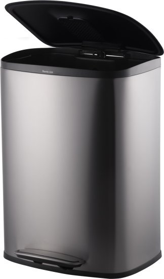 פח אשפה מעוצב עם דוושה נוחה, מנגנון סגירה שקטה ופילטר למניעת ריחות, מתאים למטבח ולחללים מרכזיים ומשלב פונקציונליות עם עיצוב אלגנטי